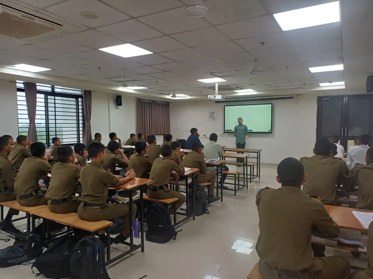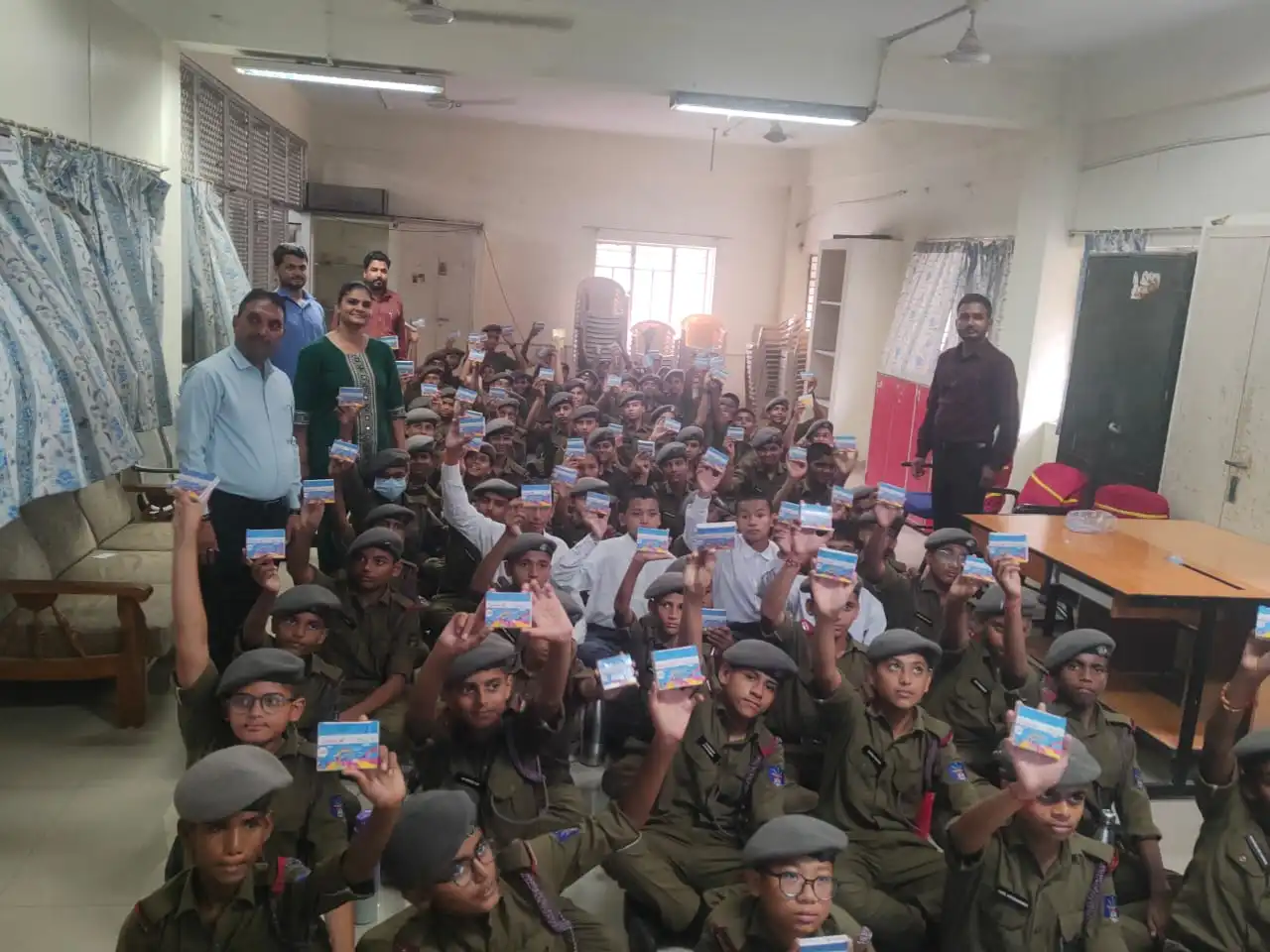 Independence Day was celebrated at Banas Sainik School. A march past was organised in the parade ground in which most of the cadets participated. The Tricolour was unfurled by the Chairman of GNPCT, Shri P.J. Chaudhary Sir. The students and teachers presented an excellent programme which was appreciated by all. On this occasion, all house flags were displayed and the school song was played.